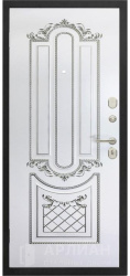 Стальная дверь белого цвета с панелью МДФ и молдингом №96