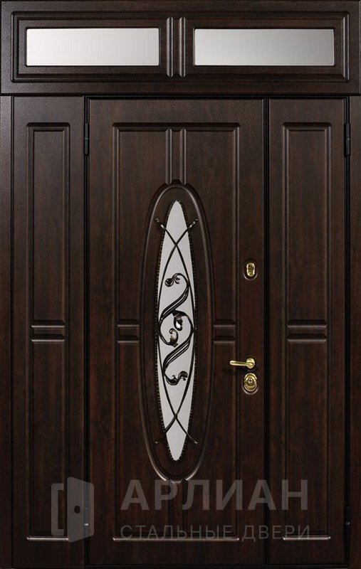 Металлическая входная дверь в коттедж с верхней фрамугой №10