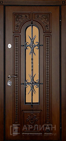 Фото №2 «Металлическая дверь МДФ шпон со стеклом и ковкой №19»