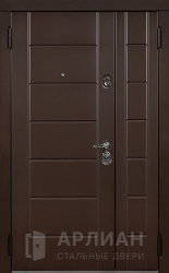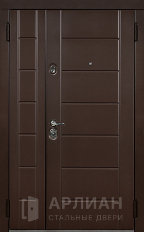 Двухстворчатая металлическая дверь коричневая с отделкой МДФ №7