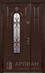 Стальная двухстворчатая дверь остекленная с ковкой снаружи №14