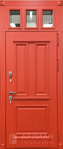 Металлическая входная дверь в коттедж с верхней фрамугой №10