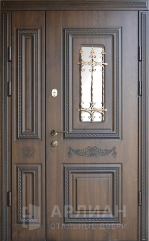 Железная входная дверь в частный дом со стеклом отделка №21