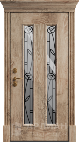 Парадная дверь с золотой патиной и фрамугой №408