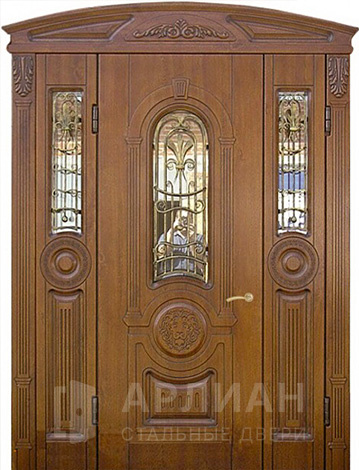 Фото «Отделка массивом парадная дверь полуторная металлическая №82»