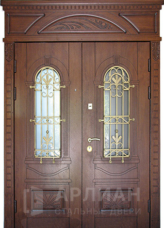 Эксклюзивная арочная дверь в коттедж со стеклянными вставками №10